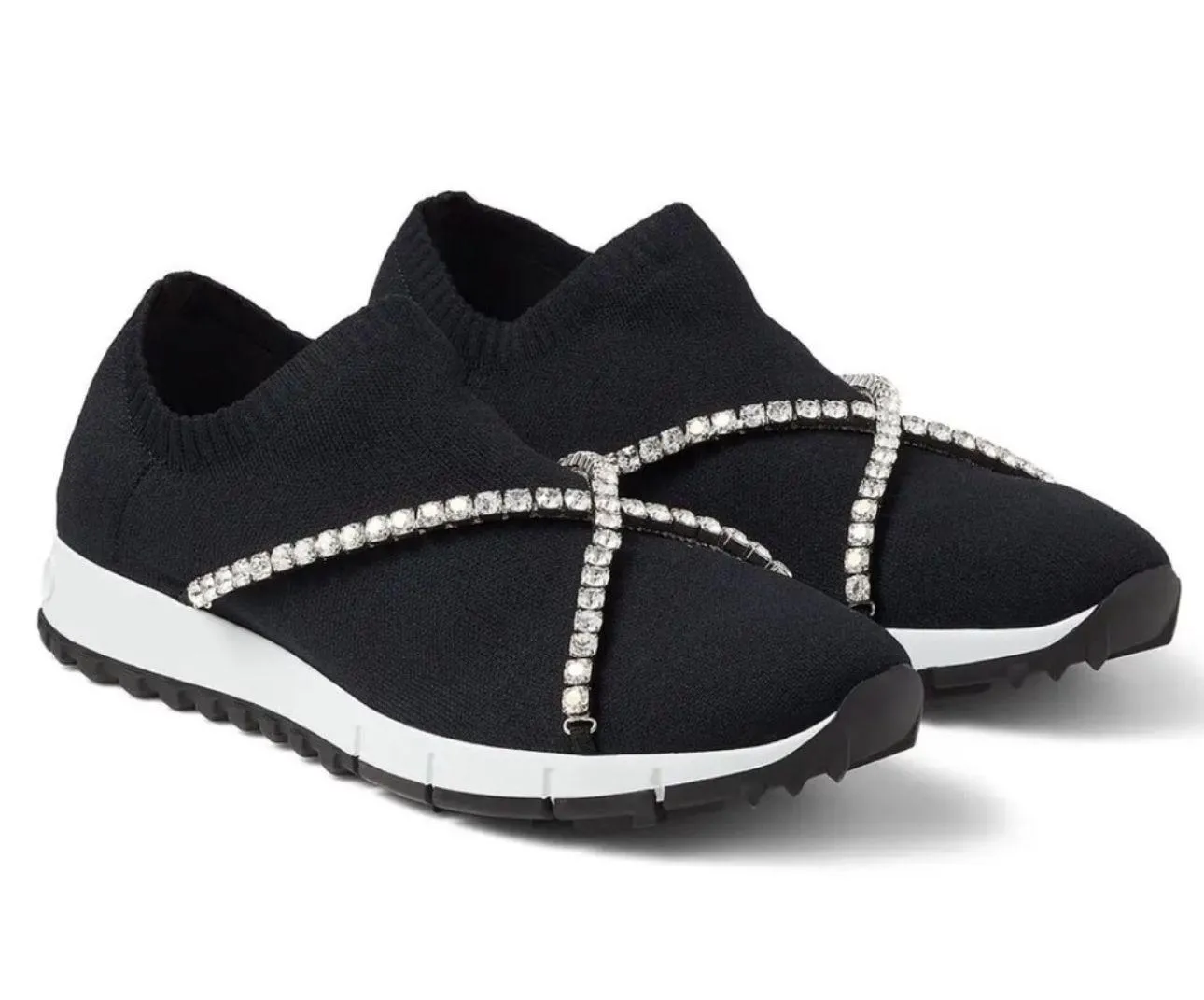 JIMMY CHOO Torri Verona Knit Trainers With Crystal Chain Black Size 39 New in Box Dust Bag Include... Show more