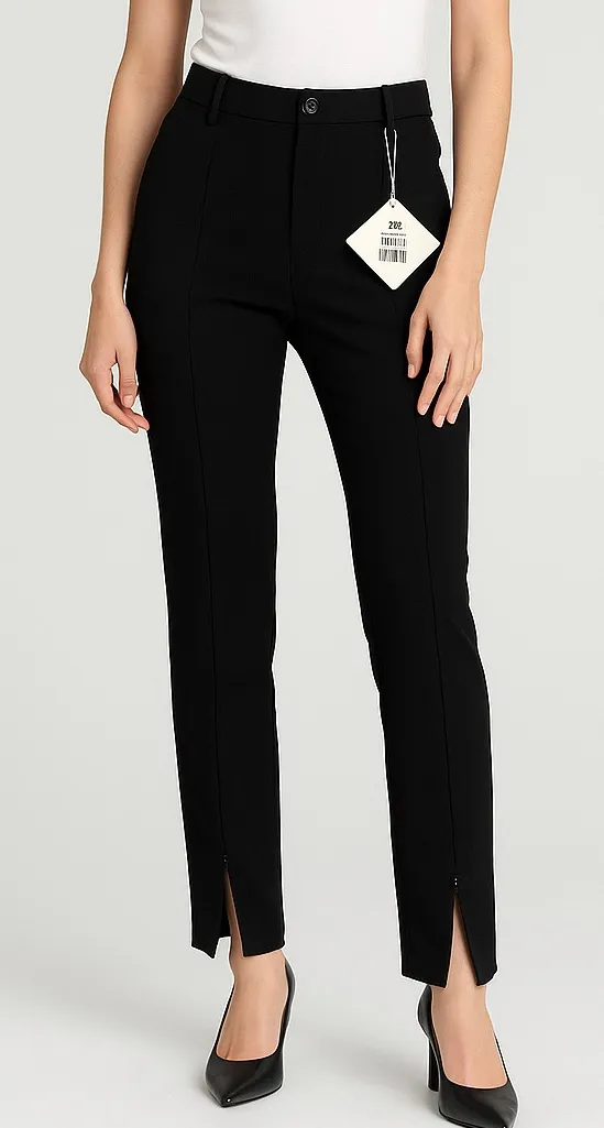 Elegant and versatile black trousers from J.ING, featuring a slim tailored fit and front seam lines that elongate the silhouette. Designed with ankle zippers and small slits for a modern, polished look. Made from a structured stretch fabric that provides comfort and a flattering shape. Perfect for work, events, or everyday chic style. • Brand: J.ING • Size: M (165/70A) • Color: Black • Material: Polyester blend (stretchy, medium weight) • Features: Zippered ankle slits, belt loops, front seams, side pockets • Condition: New with tags 💼 Ideal to pair with heels, loafers, or ankle boots for a sleek, professional outfit.