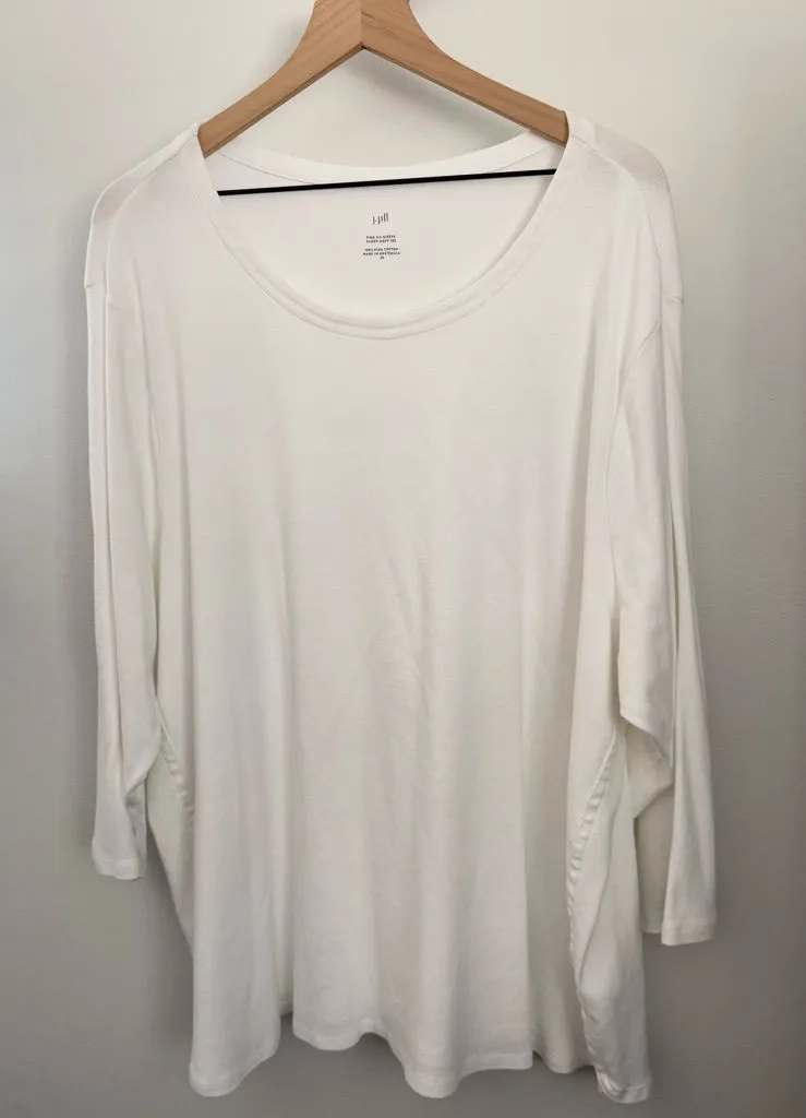 J.Jill 4X 100% Pima Cotton White Long Sleeve Tunic Tee Round Neck Minimalist - $24 - From Most