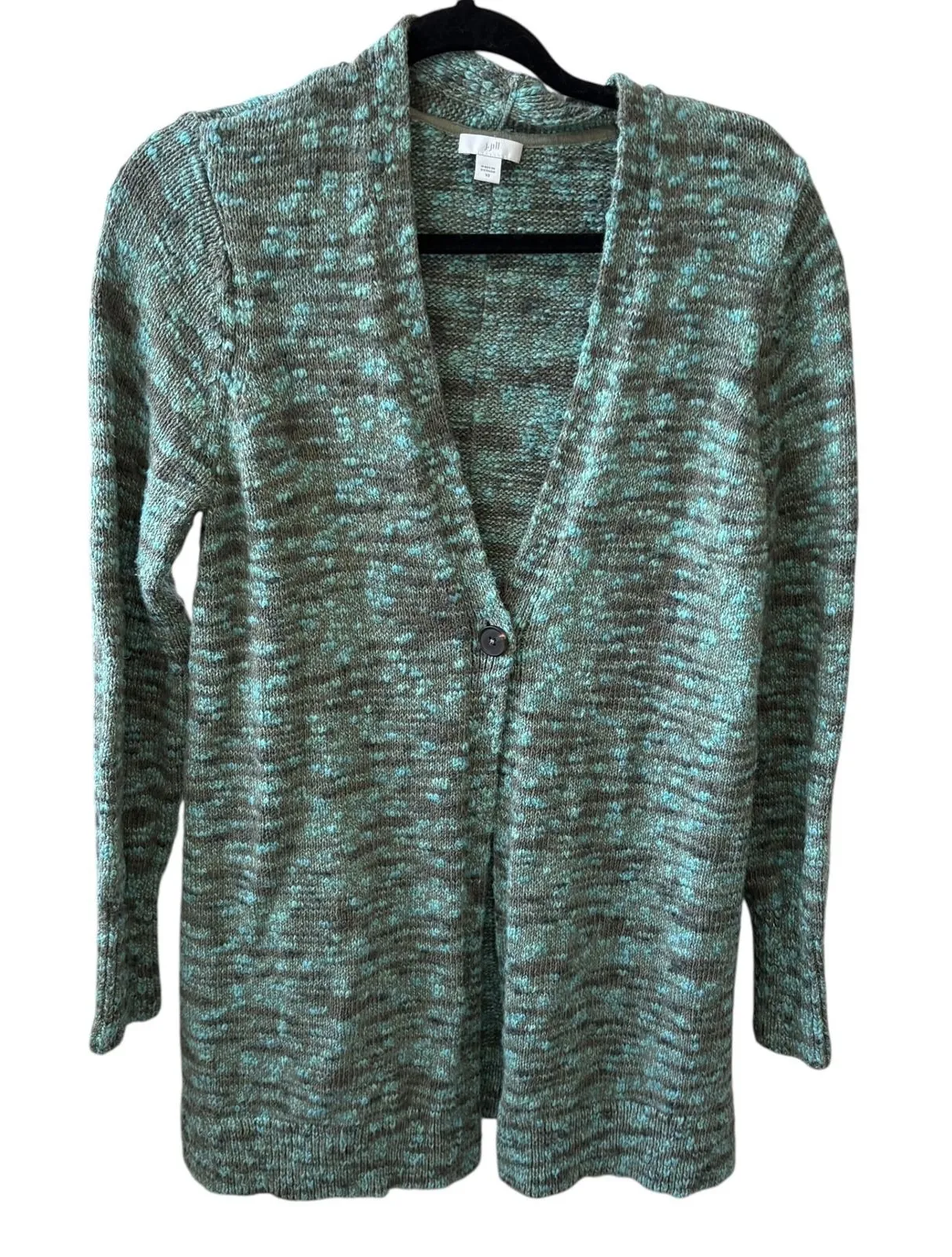 Envelop yourself in cozy comfort with this charming knit cardigan. A textured landscape of green and... Show more