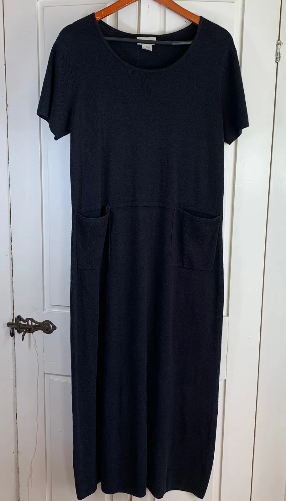 Some wash wear present. Heavy knit. J JILL black short sleeve midi dress crafted from a linen and... Show more