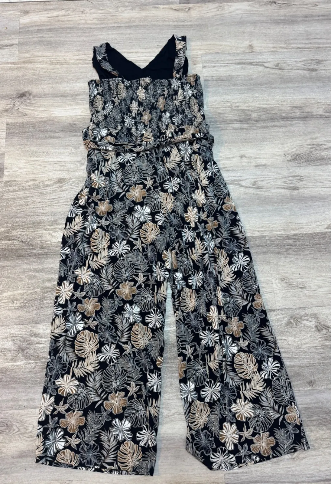 Stunning one-piece outfit in a tropical print. This sleeveless jumpsuit features a V-neckline and a... Show more