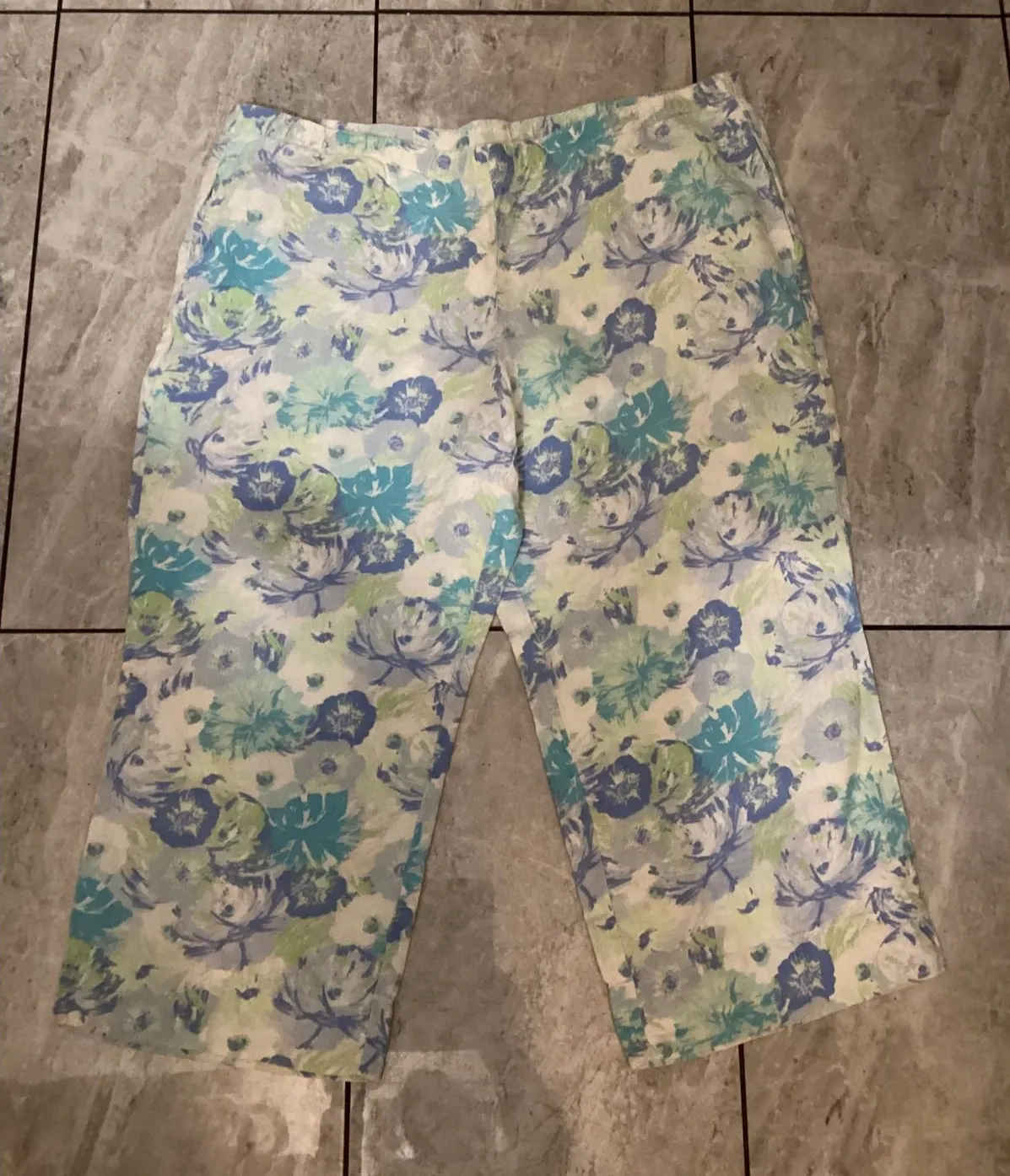 No flaws Waist flat 19" Rise 11" Inseam 22" Style: Capri Department: Women Material: Linen Leg Style... Show more