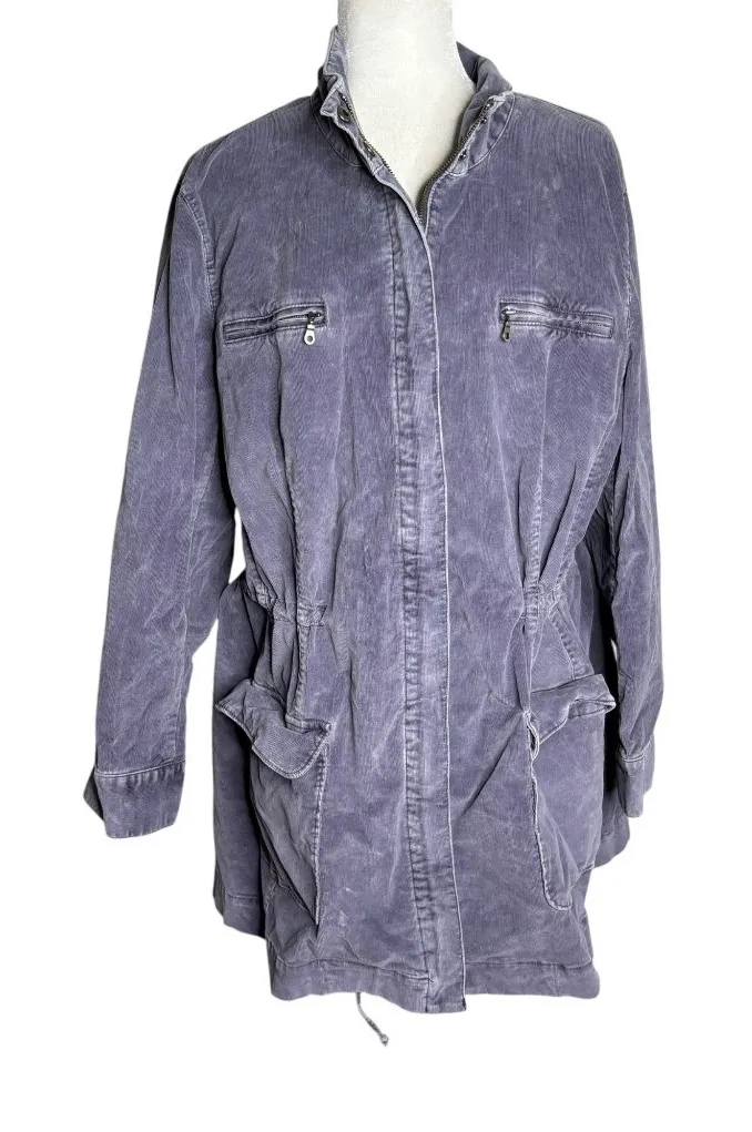 • Adjustable waist drawstring • Full zip closure with snap buttons • Four front pockets, two zippere... Show more