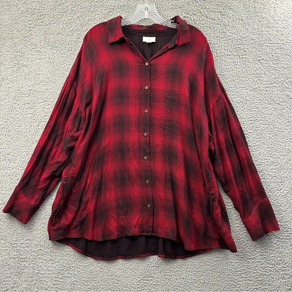 J.Jill Long Sleeve Button Up Plaid Shirt Casual Preppy Casual Travel Pockets 2X Long sleeve Button closure Collared Side pockets 100% rayon Preowned. Gently used with minimal wear.