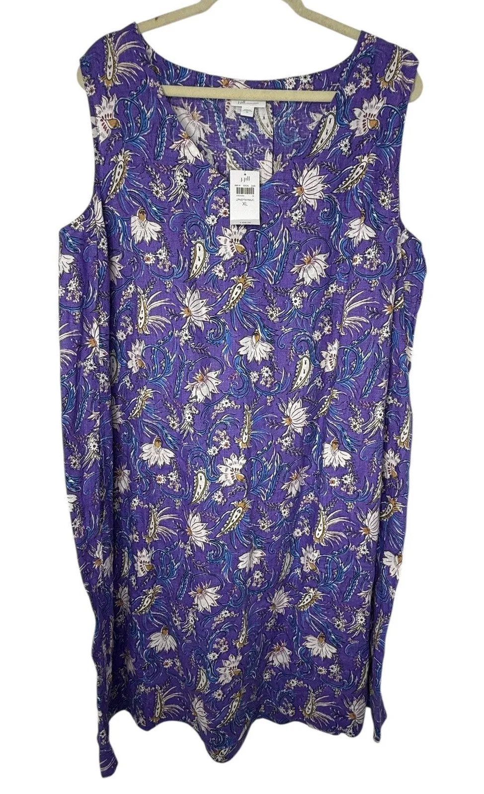 J.Jill Love Linen sleeveless floral dress in a vibrant purple botanical print. Made from 100% linen... Show more