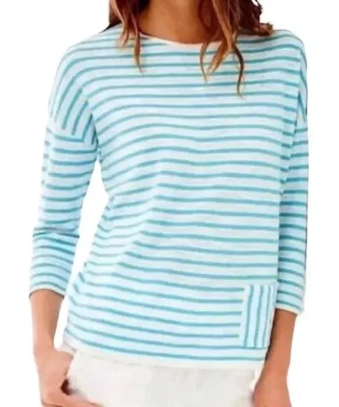 NWT J. Jill Cardigan Sweater Linen Blend Striped Button Closure Coastal, Sz M Woman’s, 55% Linen, 45... Show more
