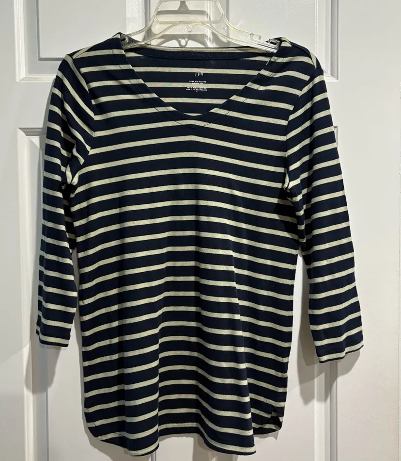 J.Jill striped pima cotton v-neck 3/4 sleeve tee shirt S dark blue - $22 - From Anna