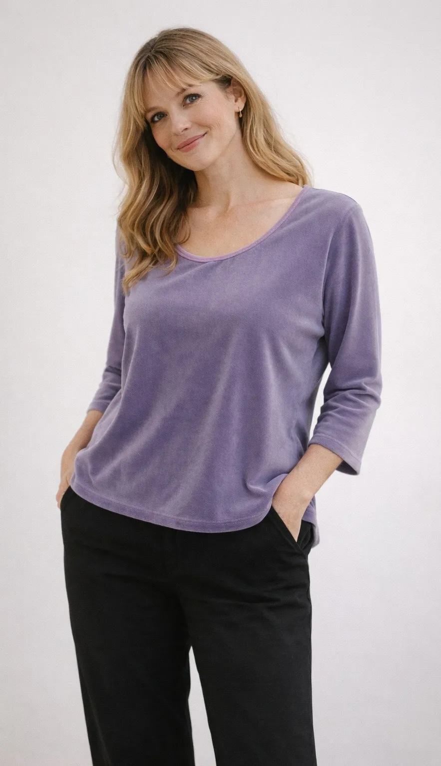 Wrap yourself in the luxurious comfort of this J. Jill velour top. Its sumptuously soft fabric drape... Show more