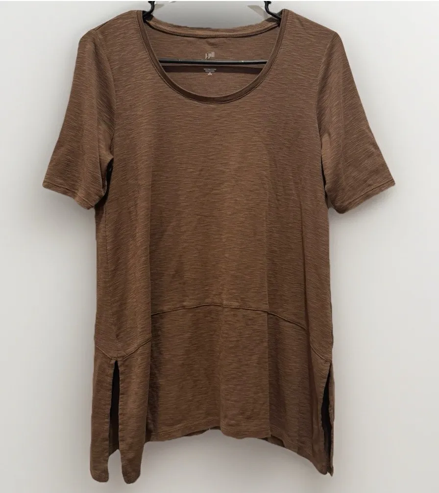 The product is a J.Jill Women's Short Sleeve Crew Neck Shirt Tunic in Brown, size S. Made from 100%... Show more
