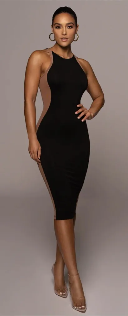 JLuxLabel Black The Hills Contrast Sheer Panel Illusion Bodycon Midi Dress XXL Brand: JLuxLabel Siz... Show more