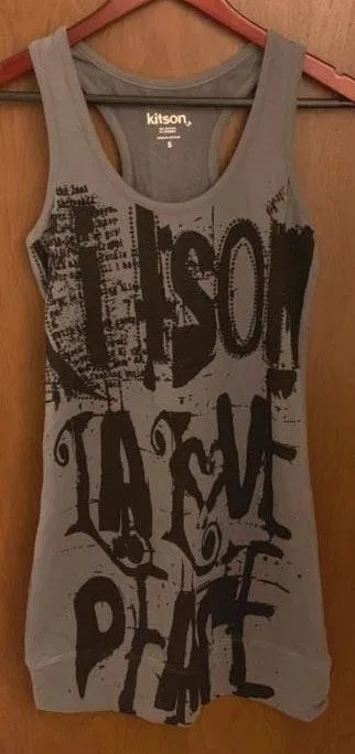 Kitson LA Grey Shirt Dress with Black Writing & Crystals. Size Small. Stretch. NWOT. Please send re... Show more