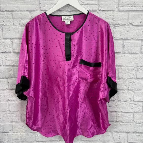 J.O. Classic Satin Silky Sleep Shirt Size M Purple Black Dot Short Sleeve Pocket Size M - $19 - From Alexis
