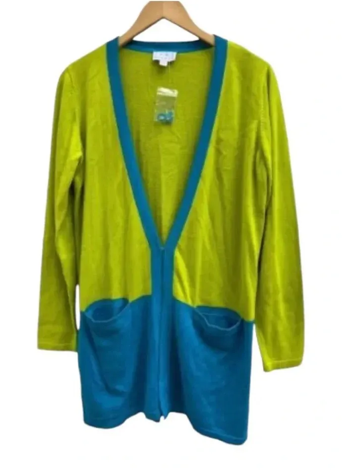 Joan Rivers Color Block Boyfriend Cardigan Size‎ S Lime Turquoise Colorblock New Blue - $30 New With Tags - From Nancy