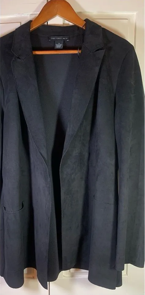 Joan‎ Vass Faux Suede Vegan Leather Blazer Womens XL Black Stretch Jacket - $34 - From Julie