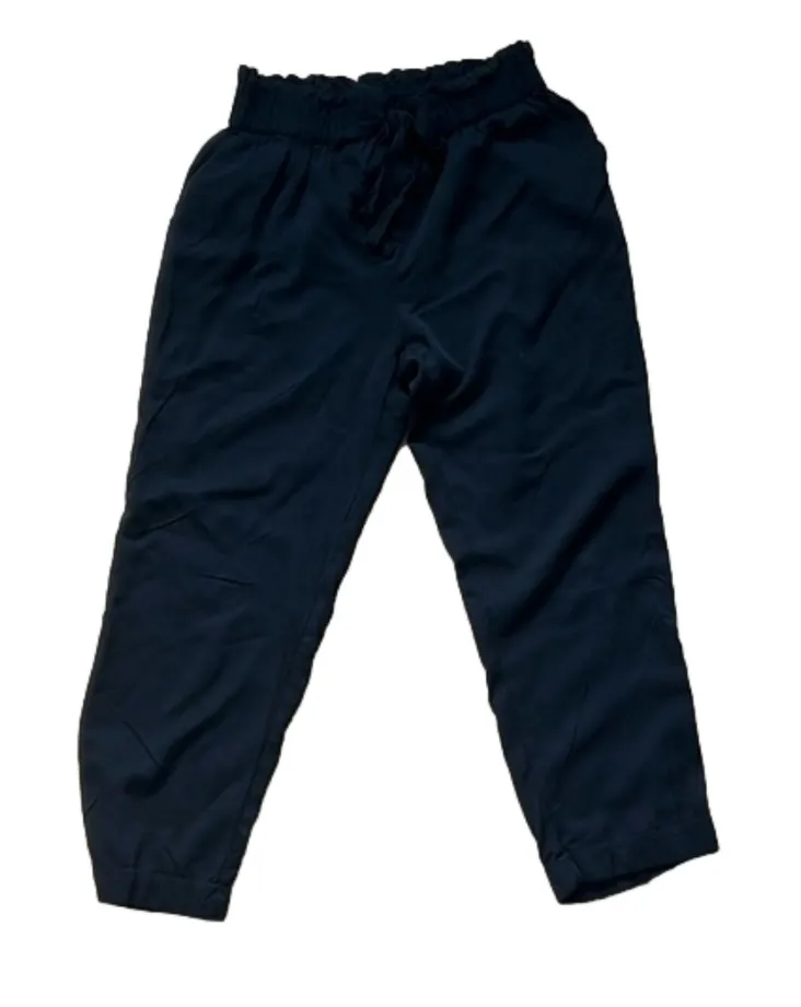 Joe B by Joe Benbasset black pull-on pants with pockets, a paper bag waistband, and a tie waist. Women’s size small. Made of 100% rayon. Excellent pre-owned condition. #paperbagpants #blackpants #rayonpants
