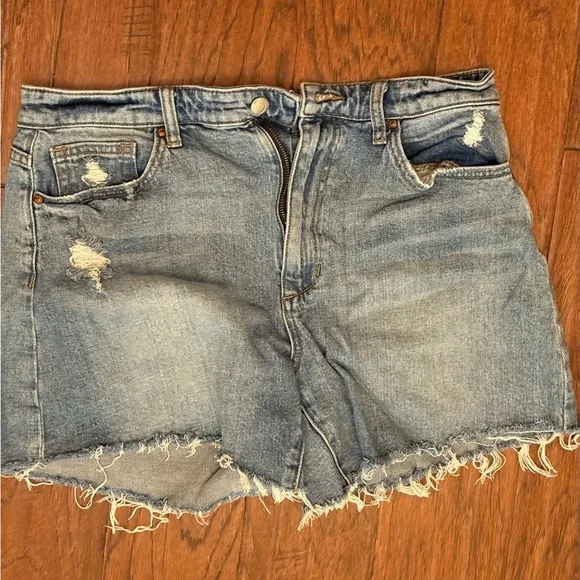 These blue jean shorts from Joe's Jeans feature a distressed design with a raw, frayed hemline, perf... Show more