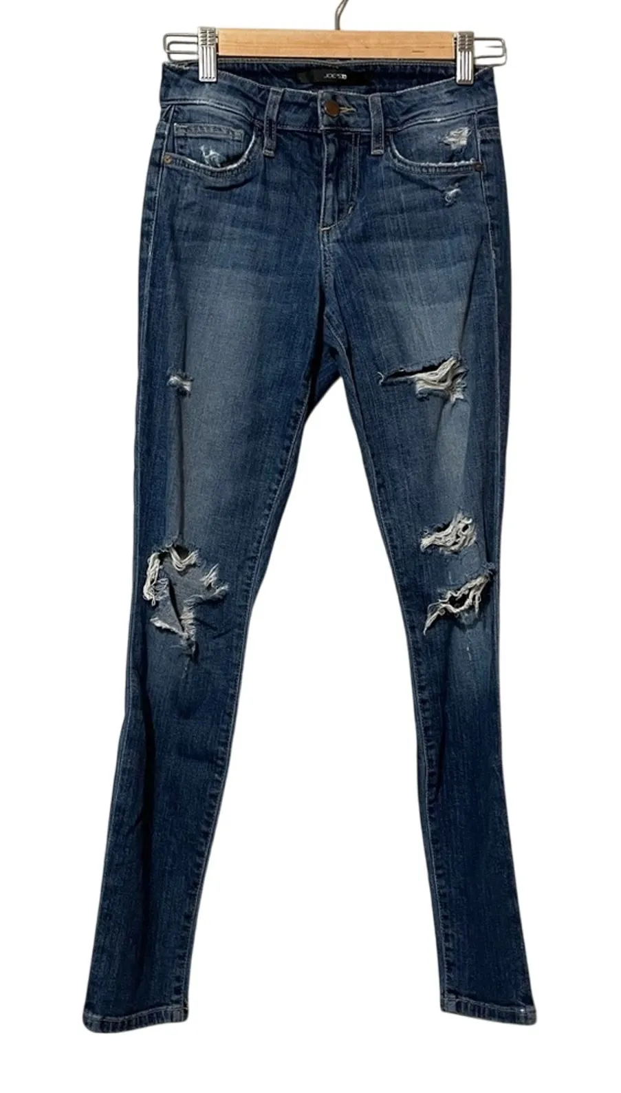 Joes Jeans Blue Medium Wash High Rise Skinny Distressed Jeans 24 Preowned in excellent condition CC2... Show more