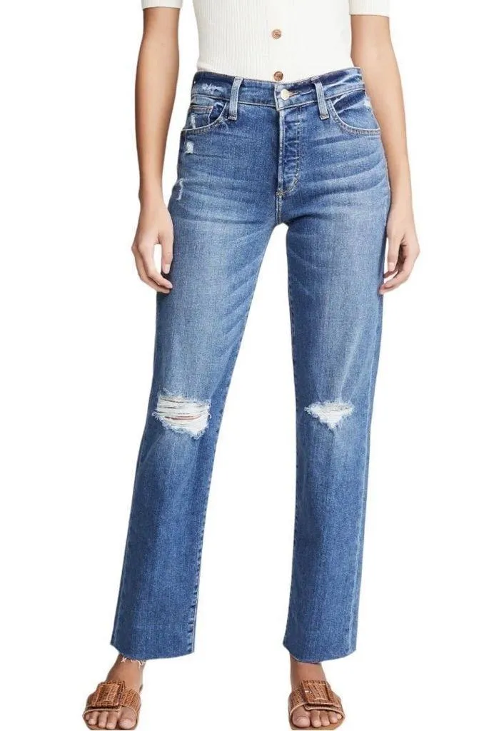 JOE’S JEANS The Niki Mid-Rise Distressed Boyfriend Raw Hem Button Fly Banjo Wash Size 29 Mid-rise.... Show more