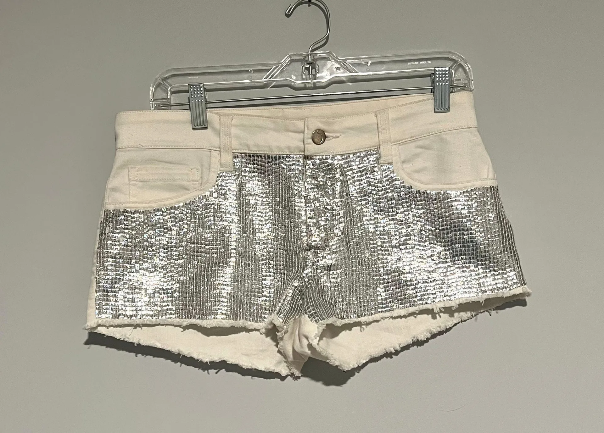 Joe's Jeans White Silver Jean Shorts Silver sequin design all over front 5-pocket design Button + z... Show more