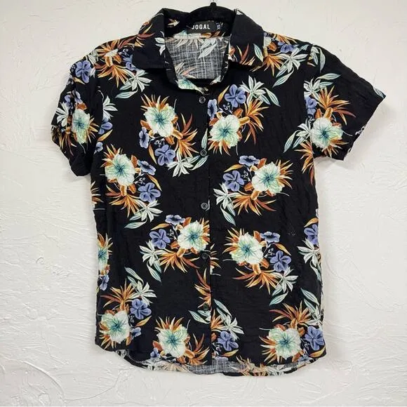 Jogal Black Hawaiian Floral Print Button Down Shirt Womens XS Short Sleeve Beach - $16 - From Lisa