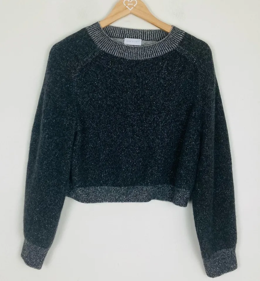 John Elliott wool and cashmere blend cropped crew neck sweater in black and gray - $116 - From Ann
