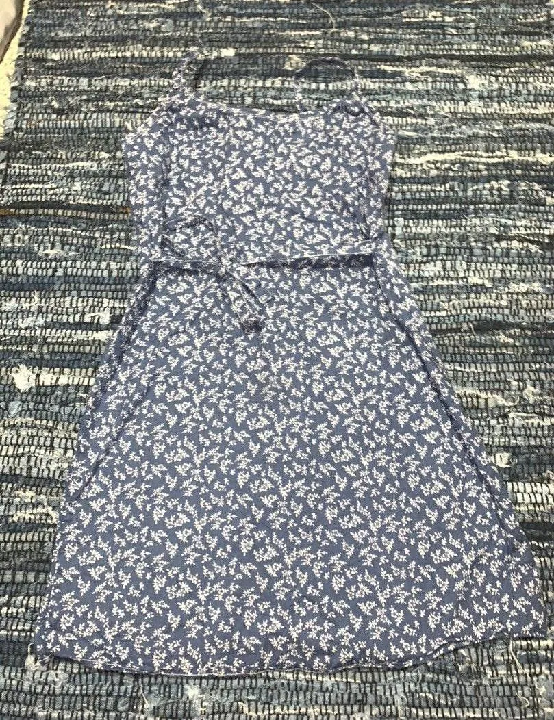 This dress is very high end and brand new!! Such a beautiful summer dress that fits not too tight. It has a dainty white flower design in the blue color. It has two straps that you can tie in front or behind along with adjustable straps.