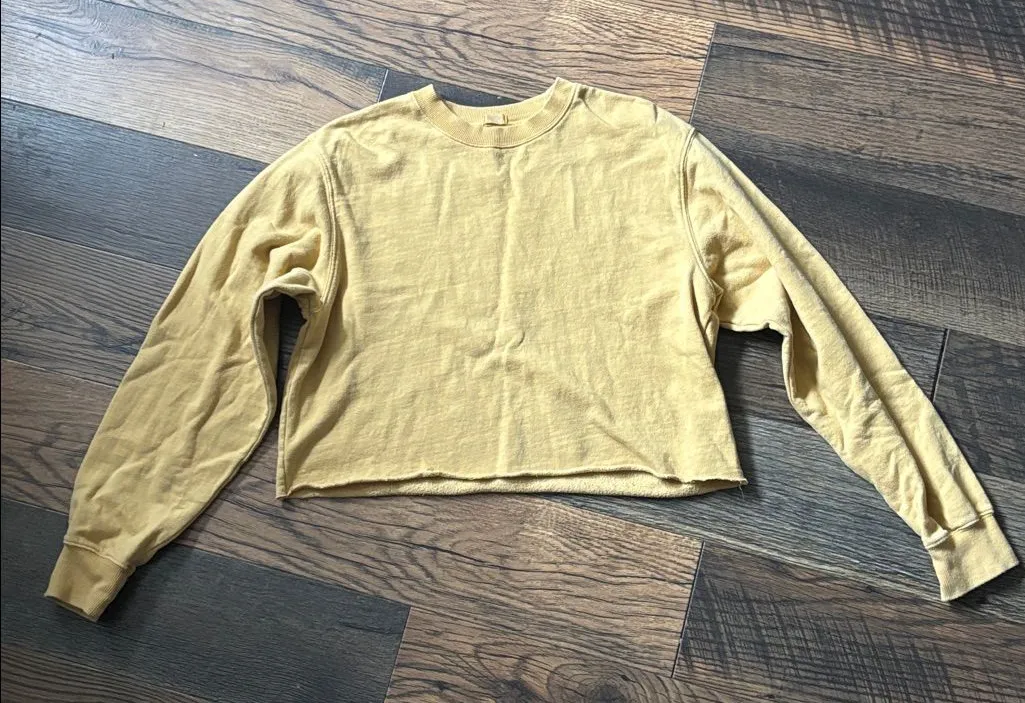 This Mustard yellow Crew Neck Sweatshirt from John Galt is a staple piece for the cold weather. This oversized pullover is complete with long sleeves, a crew neckline, and ribbed trimming on sleeve cuffs Measurements Pit to pit is 20” across Length is 18” Material: 65% cotton, 35% polyester Features: Solid color sweatshirt Crew neckline Long sleeves Cut off, Raw Edge hemline Machine washable One size fits most Preloved and in good condition with some wash wear and fading throughout Clean, smoke free and pet free home Tags: Brandy Melville Versatile Statement lounge, Raw hem, Classic, Basic, Chic, Nomad, Hippie Boho Bohemian Music Festival Concert Coachella Coastal Cowgirl Country Western Southern Southwest Travel Vacation Beach, Cropped, Crop top