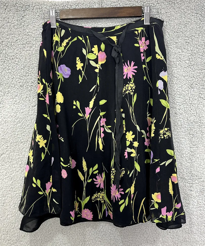 John Paul Richard Uniform Skirt Womens 12 Black Floral Silk Vintage Boho Dainty\ used condition wit... Show more