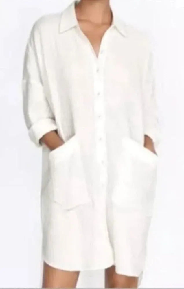 Johnny Was Calme Organic Cotton Double pocket Oversized Shirt Dress(Size Small) White - $70 - From Tecasklozet