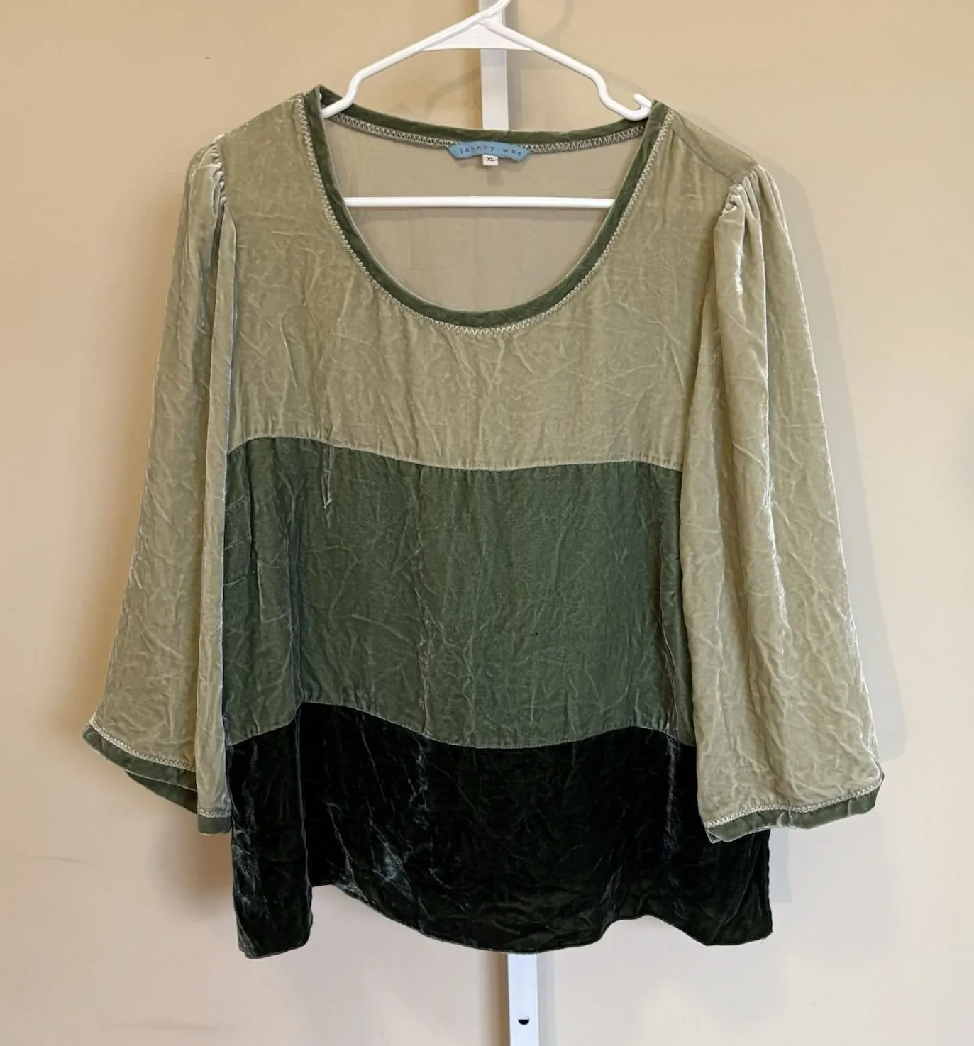 The Johnny Was Crushed Velvet Green Blouse is a whimsical and charming top designed for women in size XL. This colorblock blouse features a lovely green velvet fabric, giving it a luxurious and soft feel. The relaxed fit and cottage-inspired design make it a versatile piece that can be styled in various ways to create a stylish and comfortable look. Perfect for adding a pop of color to any outfit, this blouse is a must-have for those who appreciate unique and feminine clothing choices.