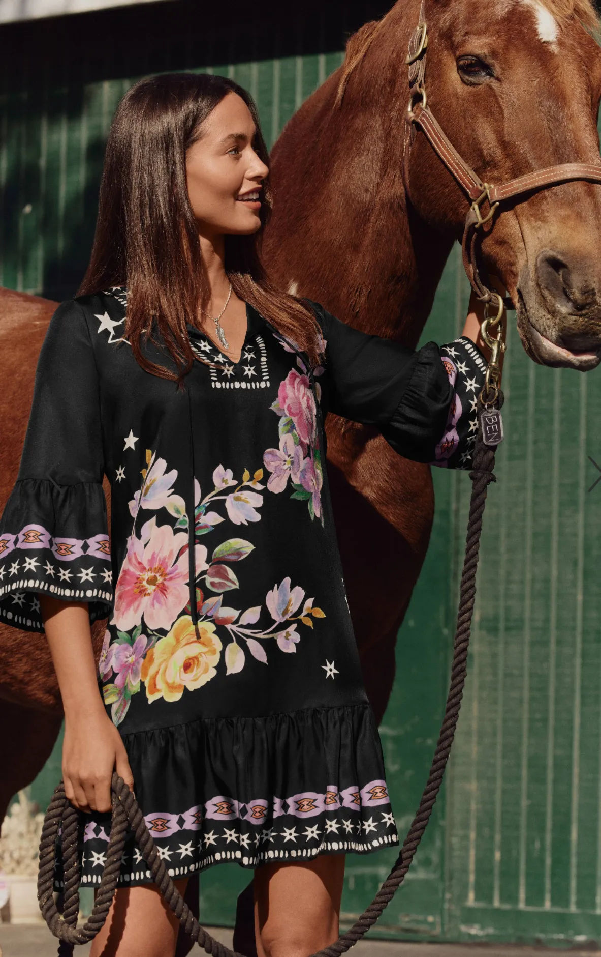 Johnny Was Hailee Silk Blend Mini Dress Size S Black Boho Floral Western Luxe - $279 (29% Off Retail) New With Tags - From Everything