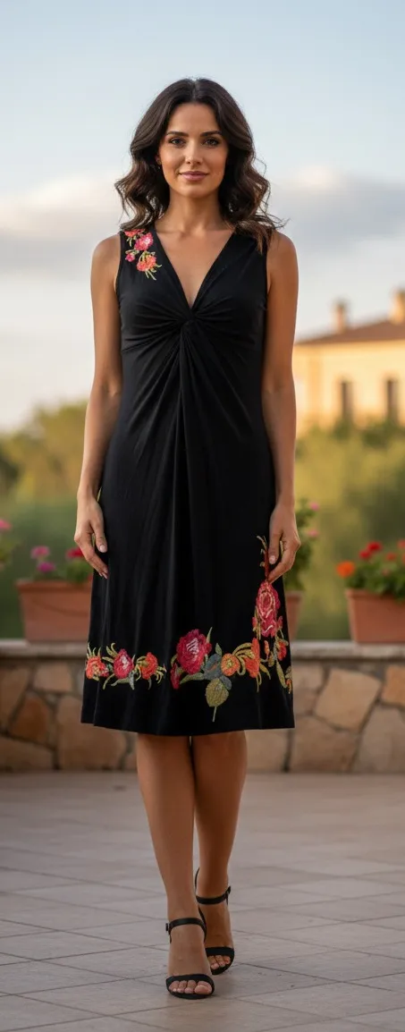 This dress is a stunning example of the brand's signature boho-chic aesthetic. Crafted from a high-quality black knit, this sleeveless piece features intricate, vibrant floral embroidery that cascades down the right shoulder and adorns the hem. The flattering V-neckline is accented by gathered/twist detailing at the bust, creating a sophisticated empire waist silhouette that drapes into a comfortable knee-length fit. Whether you're dressing it up for a garden party or keeping it casual for a vacation, this dress offers a unique, artsy look that is both feminine and effortless. • Condition: Very Good Used Condition (VGUC) • Size: Small • Color: Black with Multi-Color Floral Embroidery • Features: V-Neck, Sleeveless, Intricate Embroidery #JohnnyWas #JWLA #BohoChic #EmbroideredDress #FloralDress #VNeckDress #SleevelessDress #SizeSmall #BohemianStyle #SummerFashion #ResortWear #VacationStyle #ArtsyFashion #VGUC #ResaleFashion Measurements are approximate lying flat: Chest 16” Length 36”