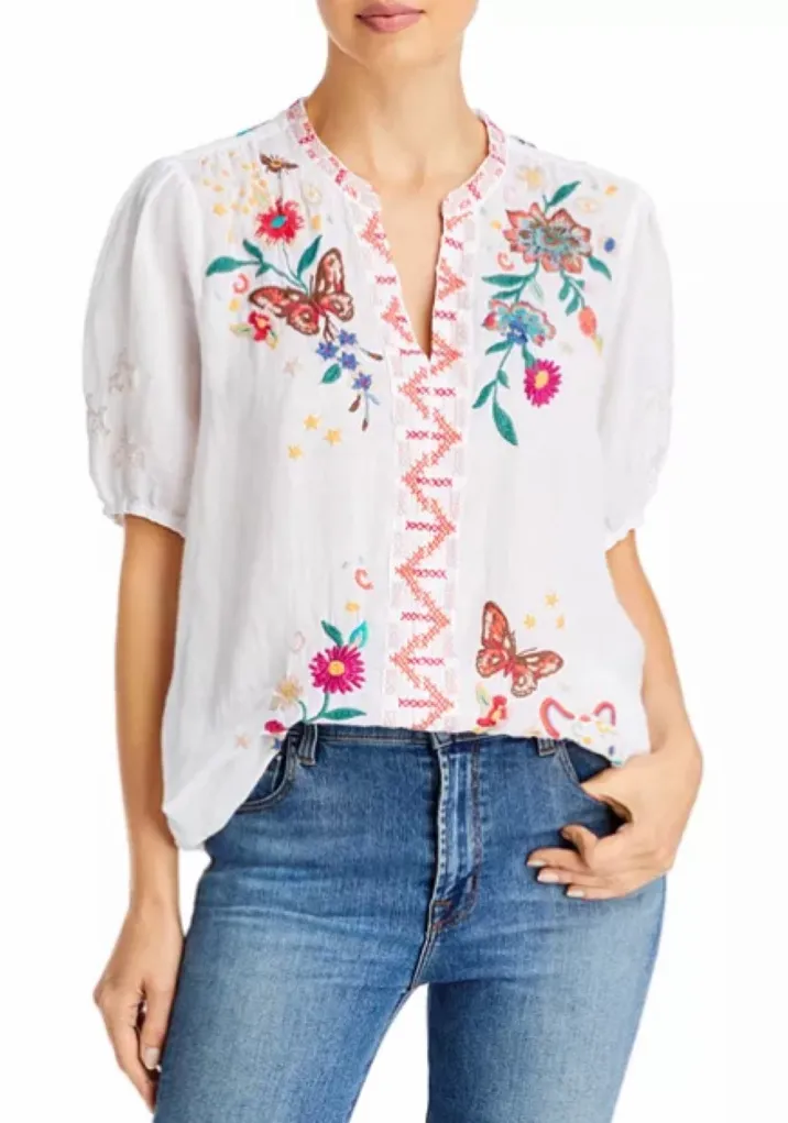 Elevate your wardrobe with this elegant white blouse featuring vibrant floral and butterfly embroidery. Perfect for any occasion, this top combines style and comfort effortlessly. Pre-owned in EXCELLENT condition Please refer to the measurements as pictured Measurements taken pit to pit and shoulder to hem If you make this purchase it's assumed that you are happy with the fitting and condition All sales are final! Will ship on the same day or the next day (except weekends & holidays). Comes from smoke-free & pet-free home. Bundle for save shipping!! Happy shopping!
