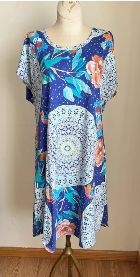 Johnny Was Tee Shirt Dress Koi Fish Flowers XL Blue - $85 - From Kaley