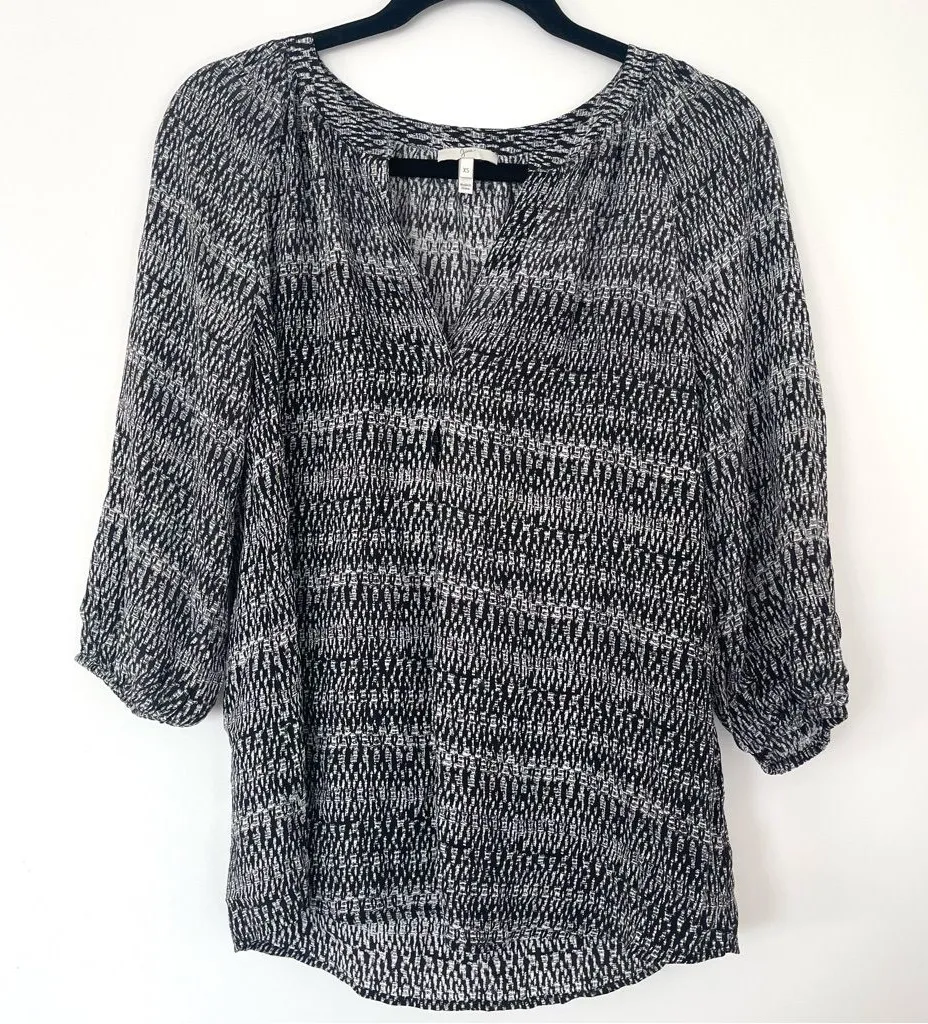 Joie 100% Silk Black & White 3/4 Sleeve Blouse Women's Size XS Office Workwear 100% Silk Split neck... Show more