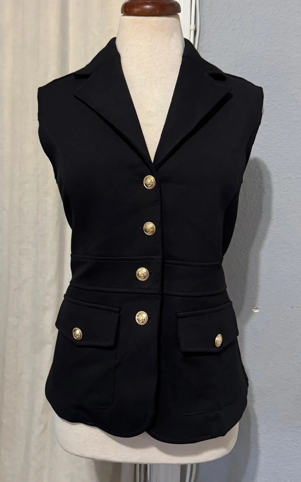 A sophisticated Joie black sleeveless blazer vest crafted with a tailored silhouette. This versatile... Show more
