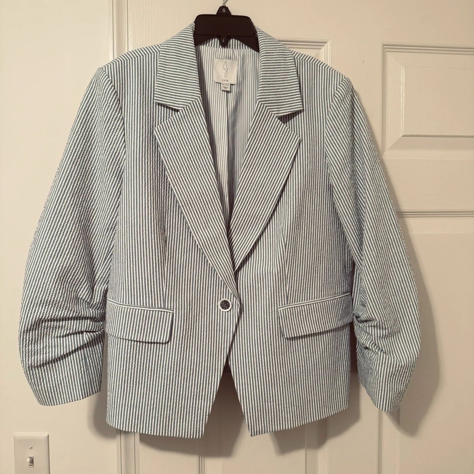 Joie Blue striped seersucker blazer Ruched Sleeves Women’s XL Preppy Nautical - $25 - From Lisa