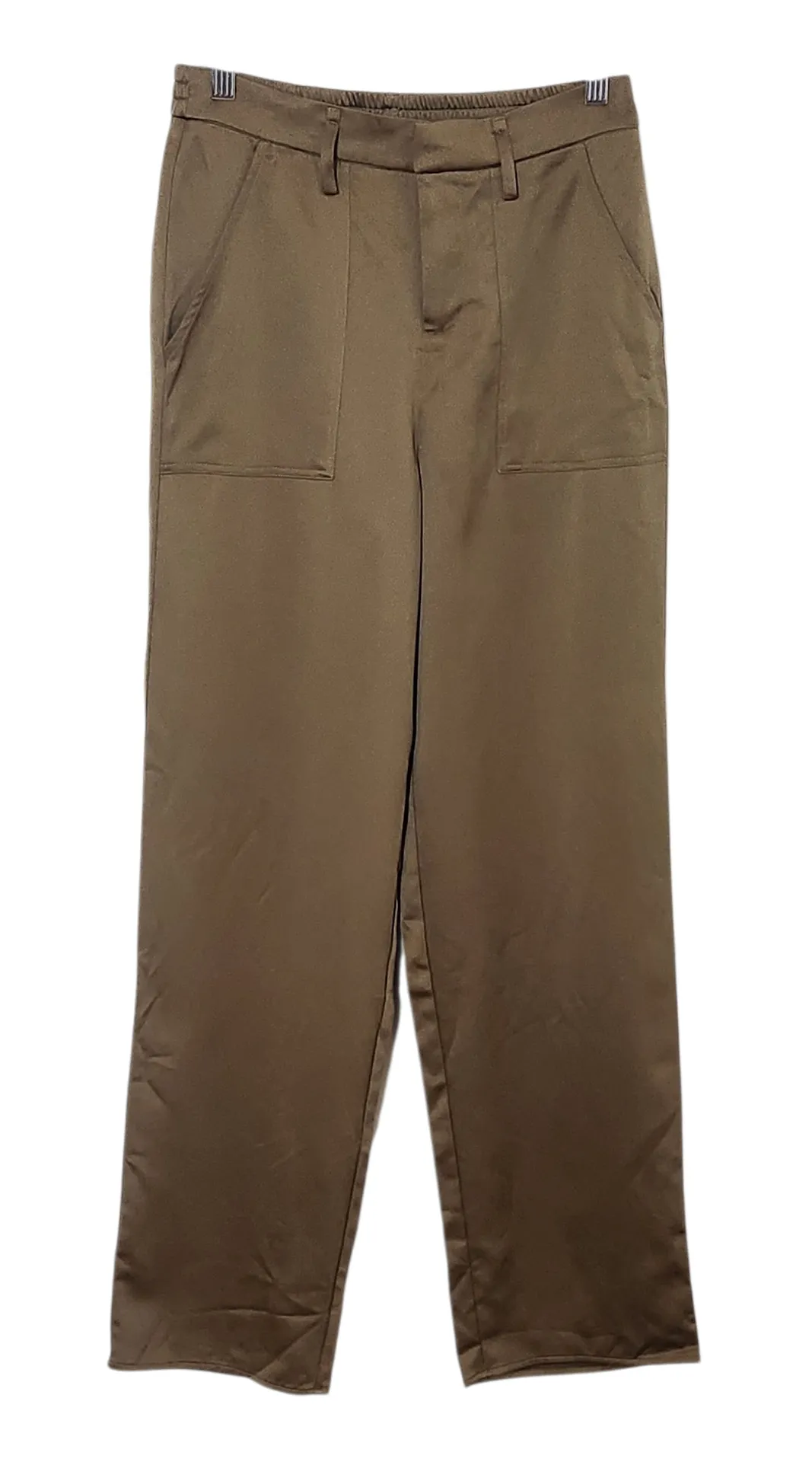 Joie brown pants with belt loops, bar/zipper/button closure, and pretty satin fabric. This still has... Show more