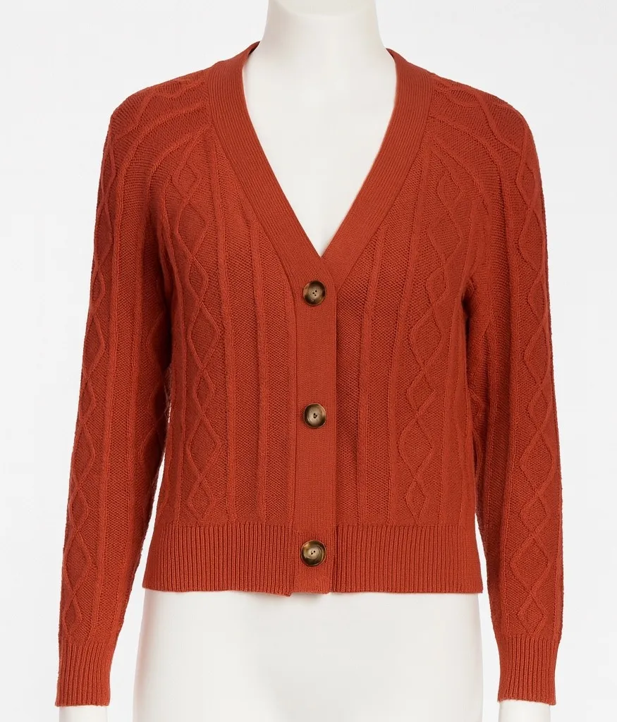 Joie Cable Knit Sweater Cardigan Tank Set Womens XS Rust Red Cropped 2pc Casual Style: Cardigan Col... Show more