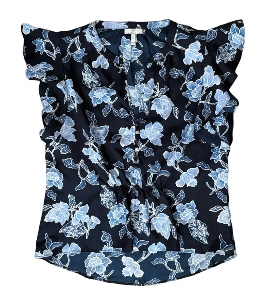 Sleeves with feminine frill add to the romance of this Joie Crisbell floral-printed blouse of silk g... Show more