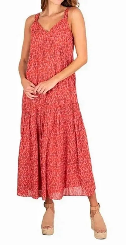 Joie Maxi Dress Abstract Animal Print Flowy Boho Feminine Large Joie Bondi tea rose tiered maxi dr... Show more