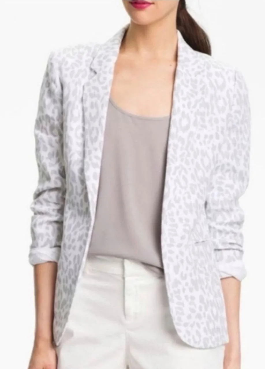 Joie Mehira White and GTray Leopard Linen Blazer in Size 6. Excellent Condition. Originally Sold for... Show more