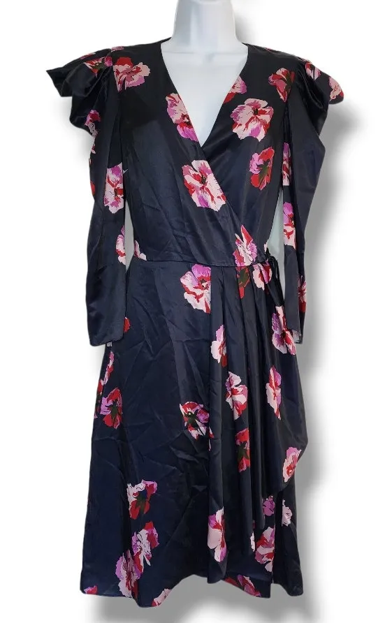 Joie Miltona Navy Floral Satin Wrap Midi Dress Women’s Size: Small Navy satin with painterly pink,... Show more