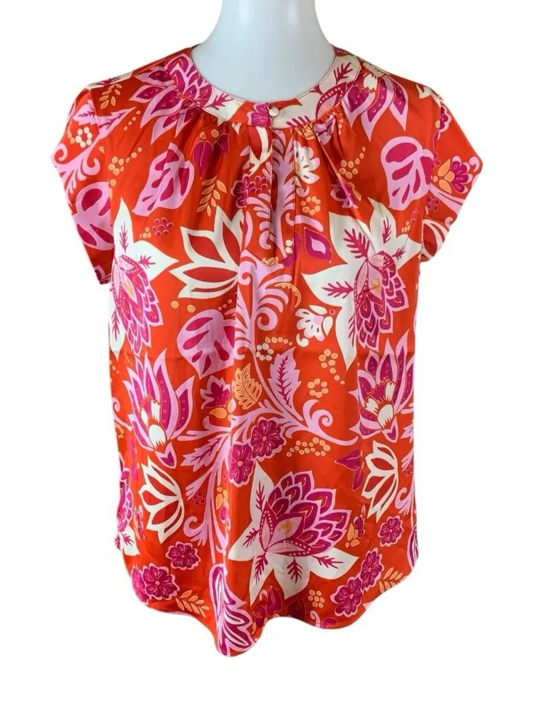 Joie Red Pink Floral Print Blouse Romantic Feminine Cottagecore Garden‎ Party M Size M - $22 - From Rodica
