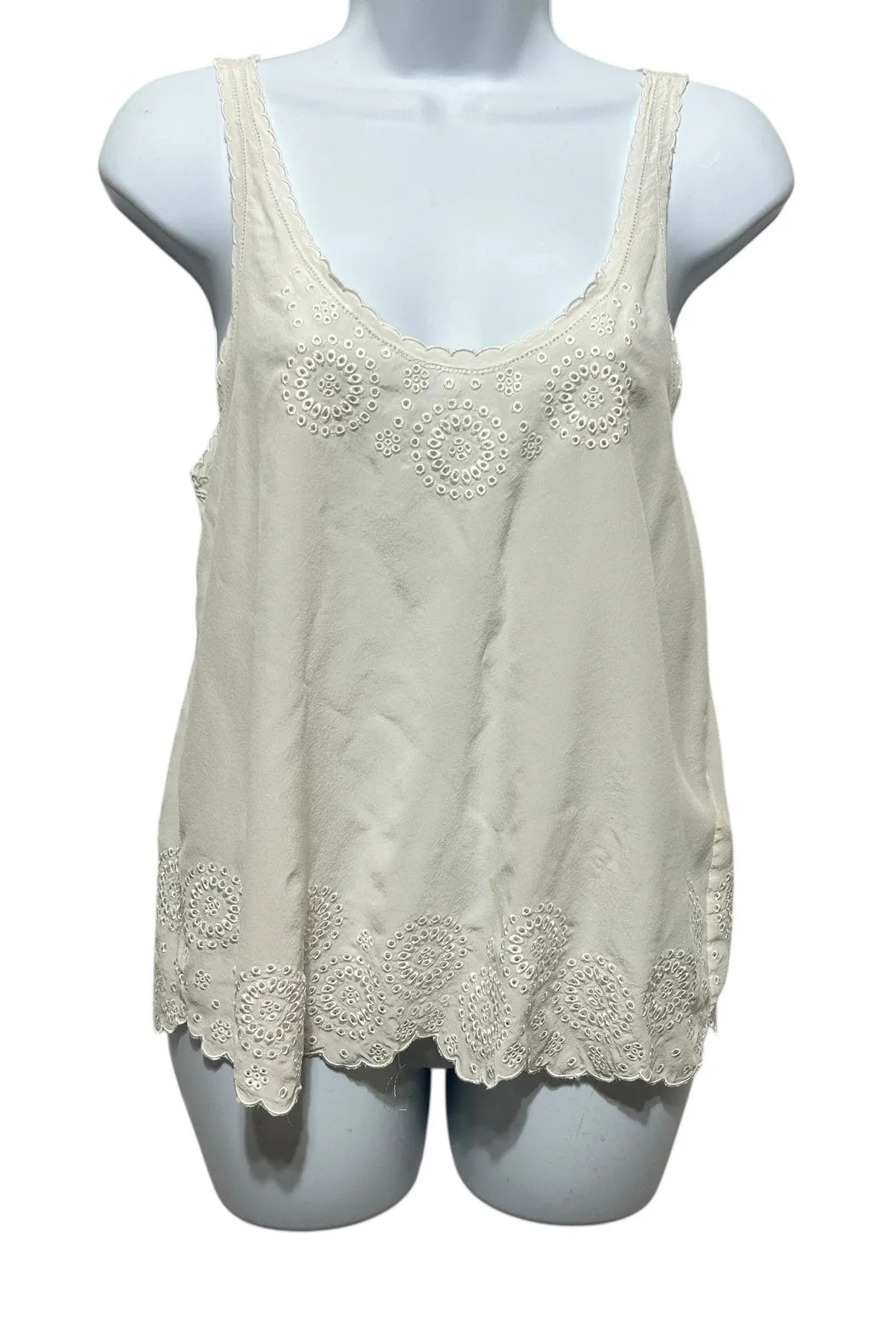 Joie Ivory Silk Eyelet Tank Coquette Romantic Scalloped Hem Top S Features: • 100% silk with airy d... Show more