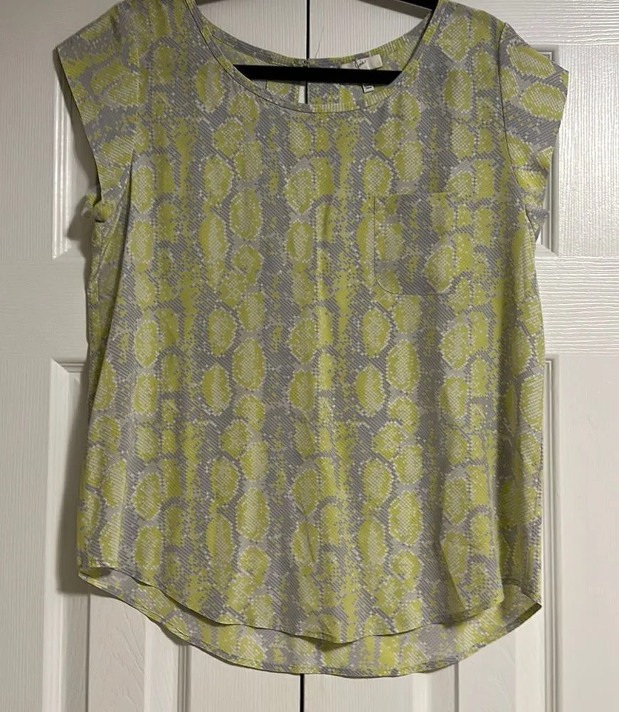 Joie Women’s Grey & Green Geometric Print Short-sleeve Blouse. Front pocket. Made of silk. Gently wo... Show more