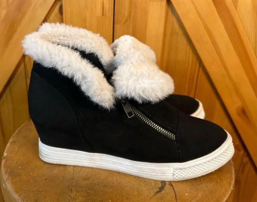 Jolimall Womens Size 9 Slip On Zipper Platform Wedge Faux Fur Trim Ankle Booties Black - $35 - From Jessica