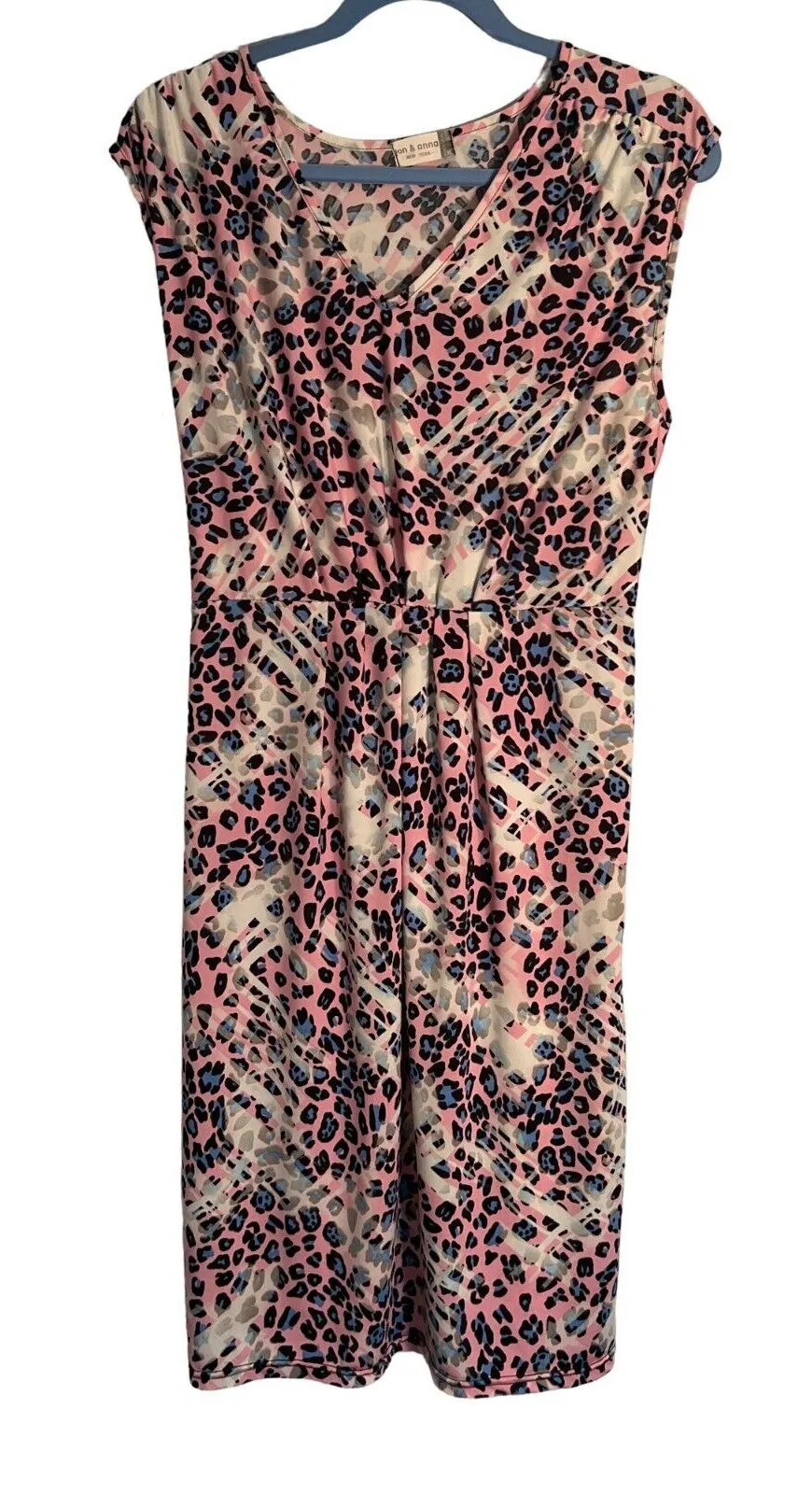 JON and ANNA New York ~ Womens Dress Size XL Pink Black Animal Print Sleeveless Midi Career Wear 19" armpit to armpit 34" waist 39" length excellent condition ** colorful animal print pattern ** midi / knee-length dress i ** sleeveless design, V-neckline, and an elastic waistband ** pullover dress ** made of lightweight polyester material with a rayon fabric type ** machine washable for easy care ** perfect for weddings, holy communion, parties, or casual outings * ** all items stored in a smoke-free & pet free home