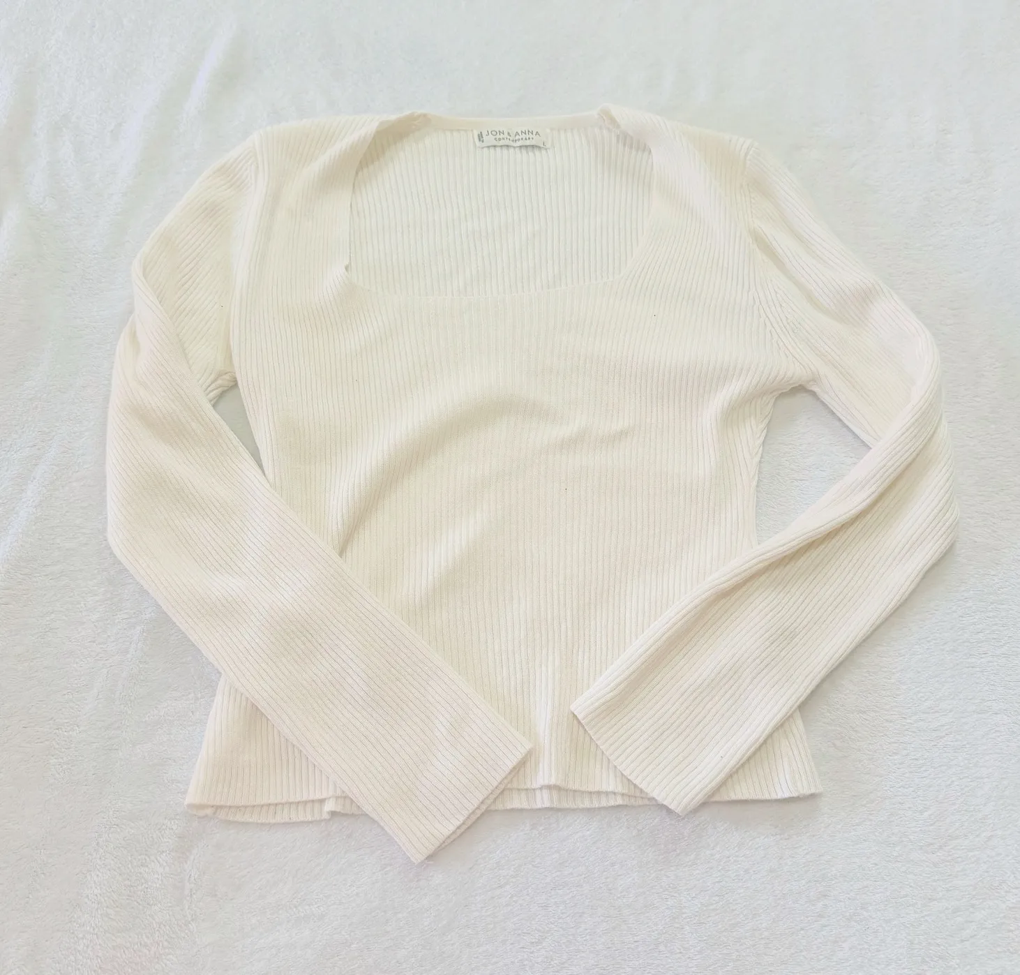Jon & Anna White Ribbed Long Sleeve Top Size L - $14 - From Dayne